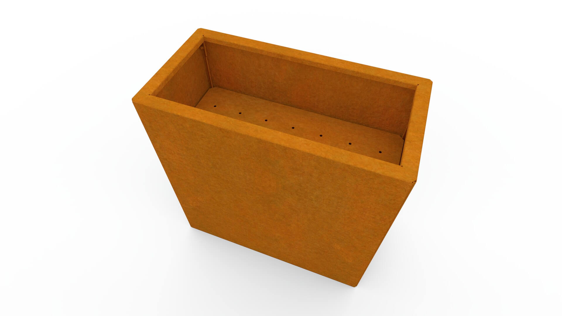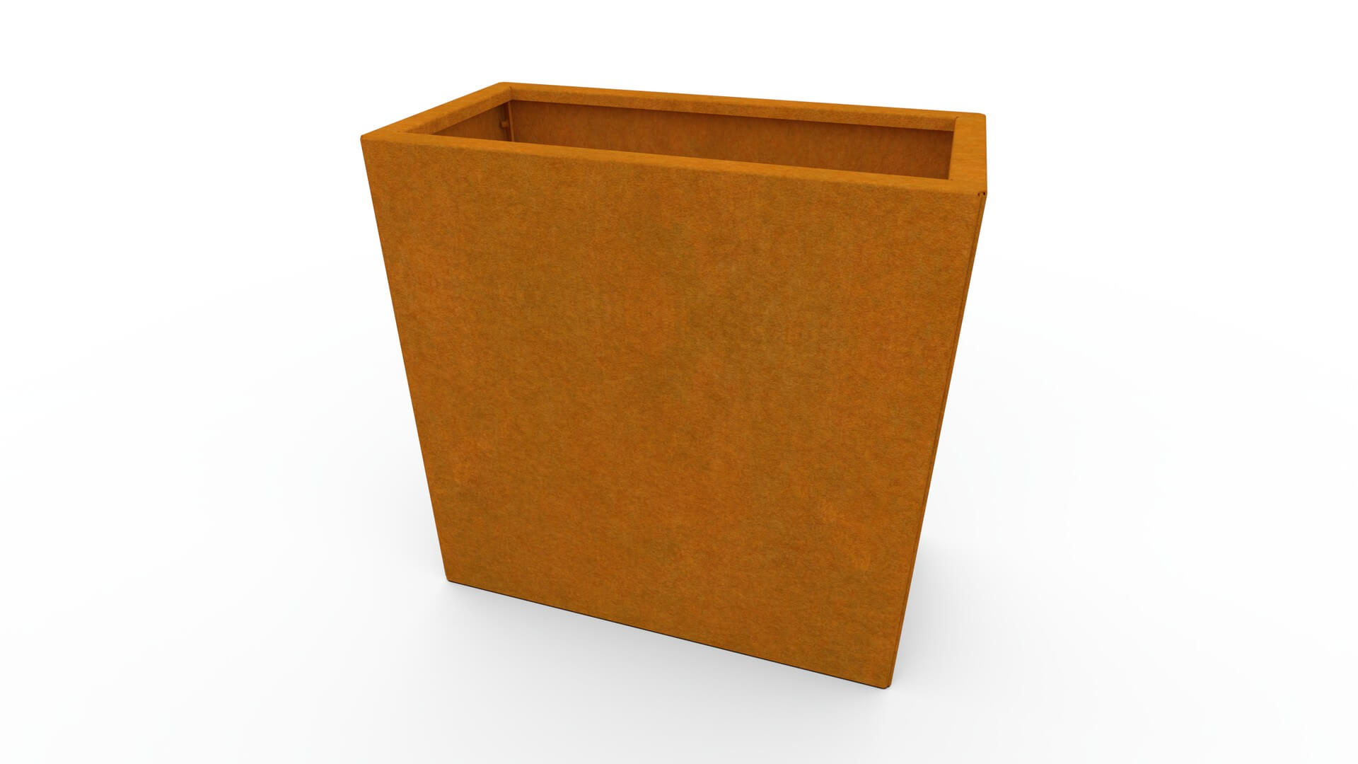 Der Pflanzkübel ist aus hochwertigem, 1,5 mm starkem Cortenstahl gefertigt, der für seine außergewöhnliche Widerstandsfähigkeit und lange Lebensdauer bekannt ist. Mit der Zeit entwickelt Corten eine natürliche bräunliche Patina, die dem Material ein charakteristisches, modernes Aussehen verleiht. Die Patina bildet sich allmählich und sorgt dafür, dass der Pflanzkübel unter allen Witterungsbedingungen beständig bleibt, ohne dass eine Lackierung oder zusätzliche Pflege erforderlich ist.