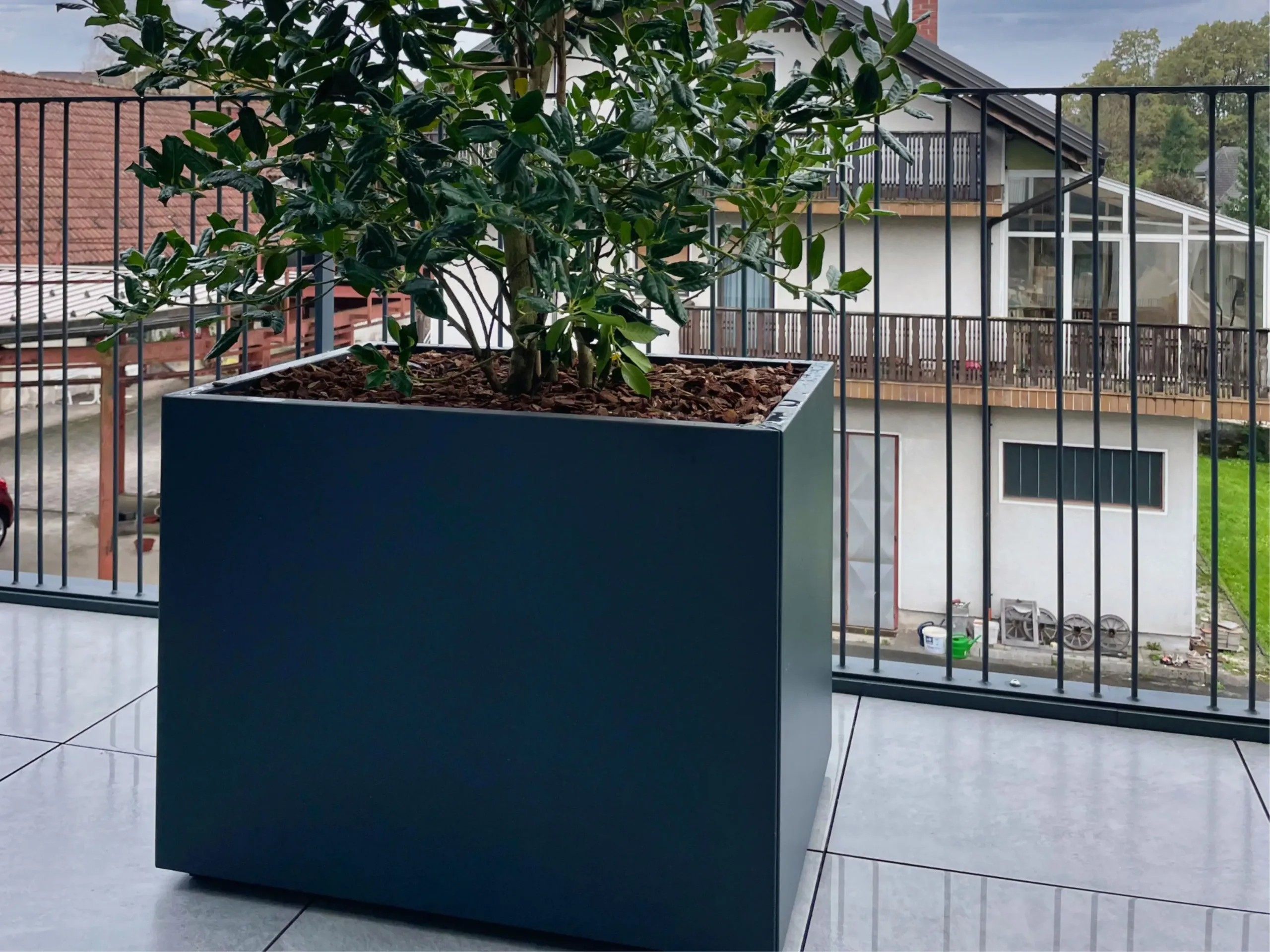 Der Metallkübel fügt sich harmonisch in verschiedene Architekturstile ein – von modern bis klassisch. Durch seine schlichten Linien und die elegante Verarbeitung eignet er sich sowohl für die Bepflanzung im urbanen als auch im natürlichen Umfeld.